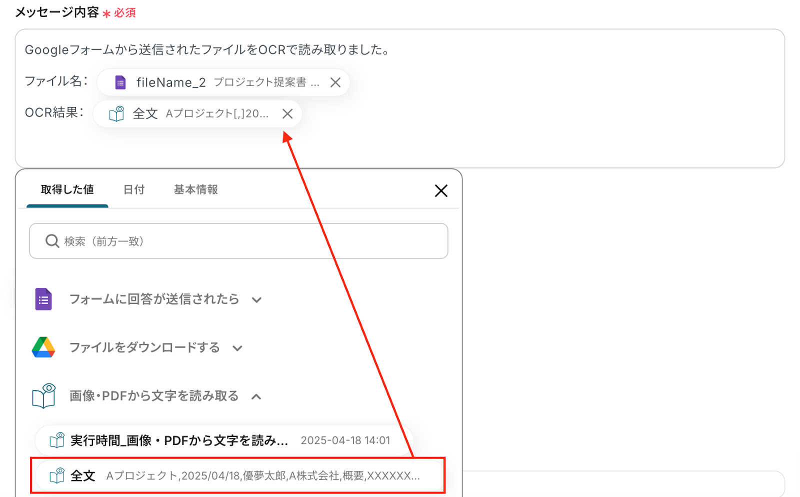 フォームで受け取ったファイルをOCRで読み取り、チャットツールへ自動で通知する