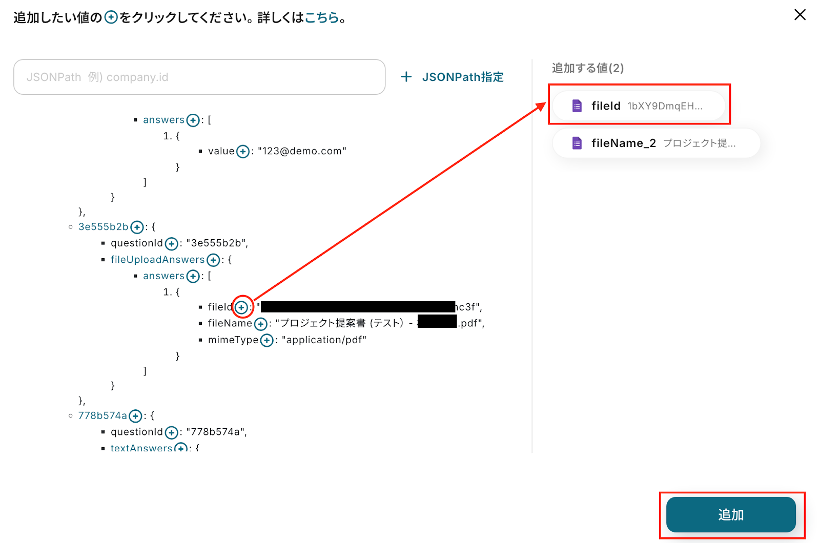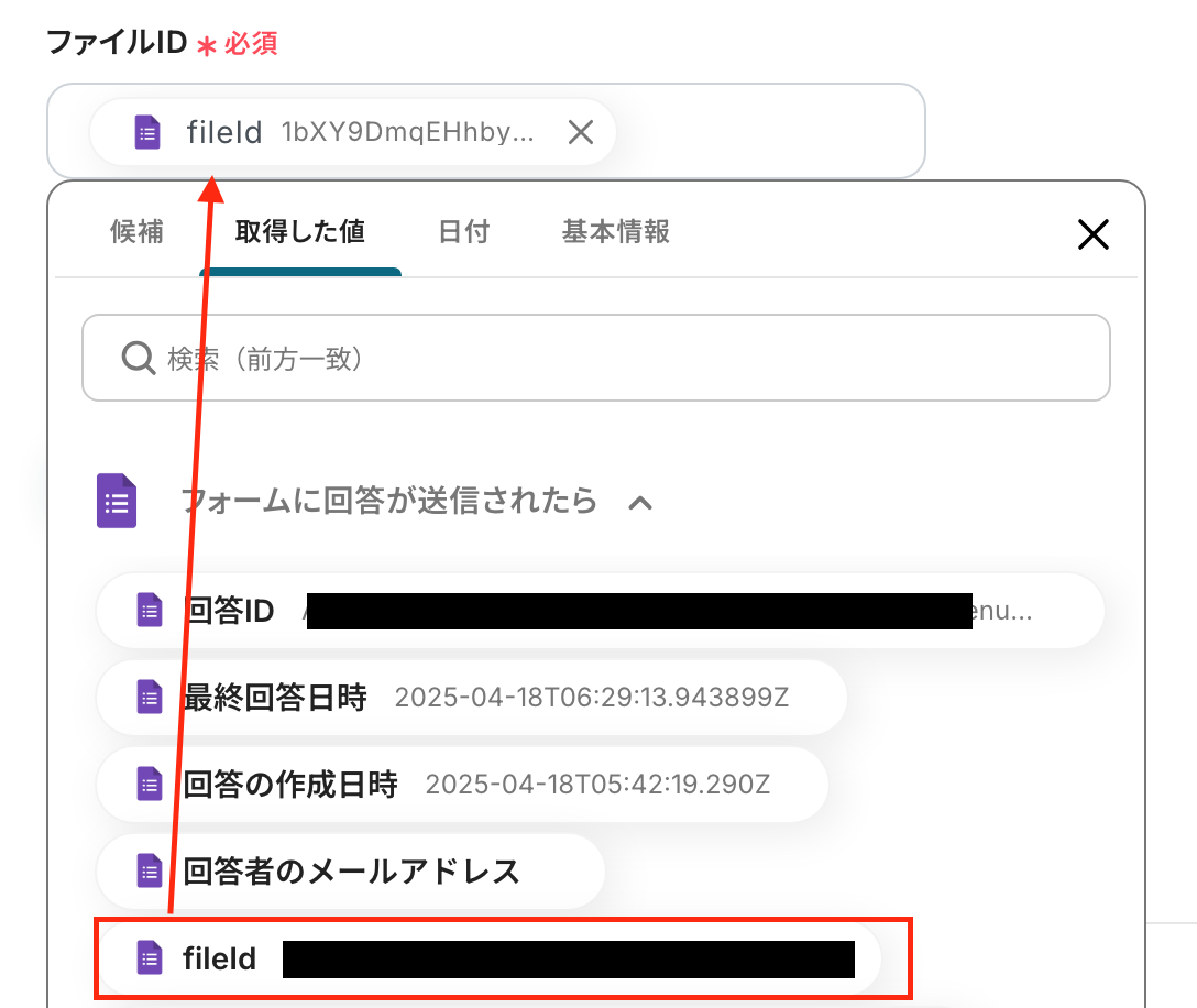 取得した値を使用するため、以下のように設定してください。