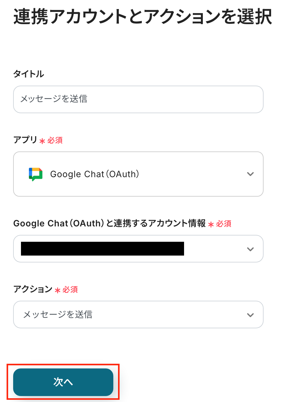 次の項目で、Google Chatに通知する文章を設定しましょう。