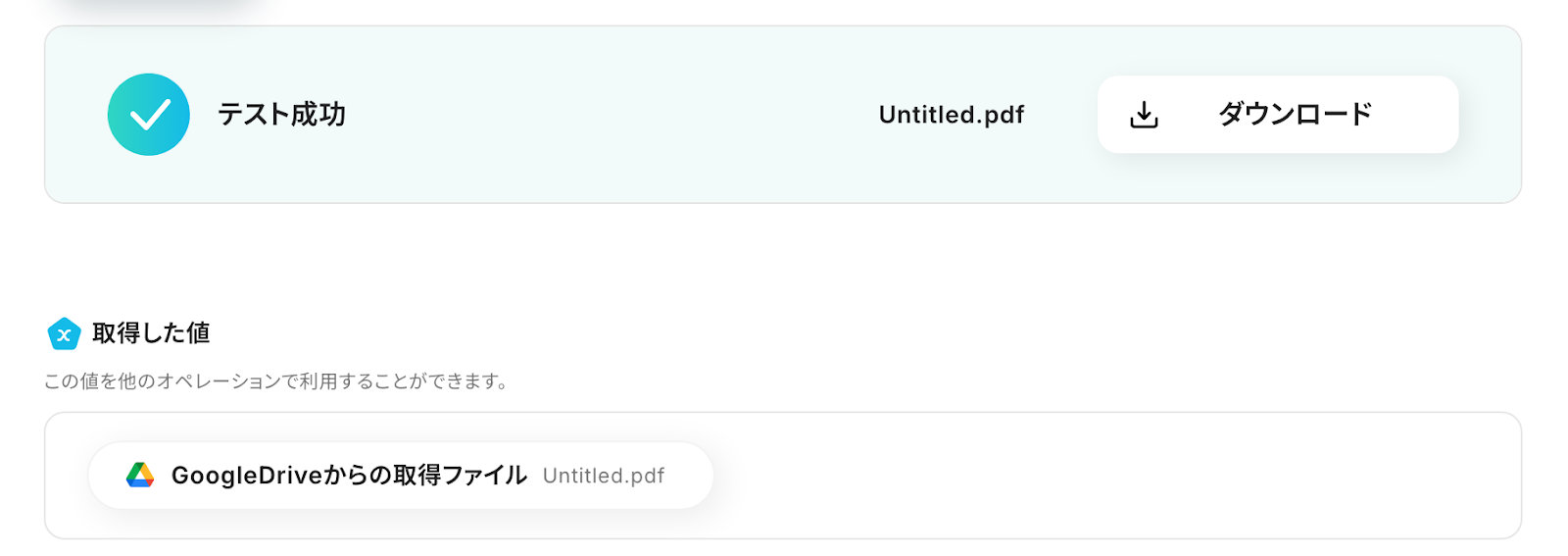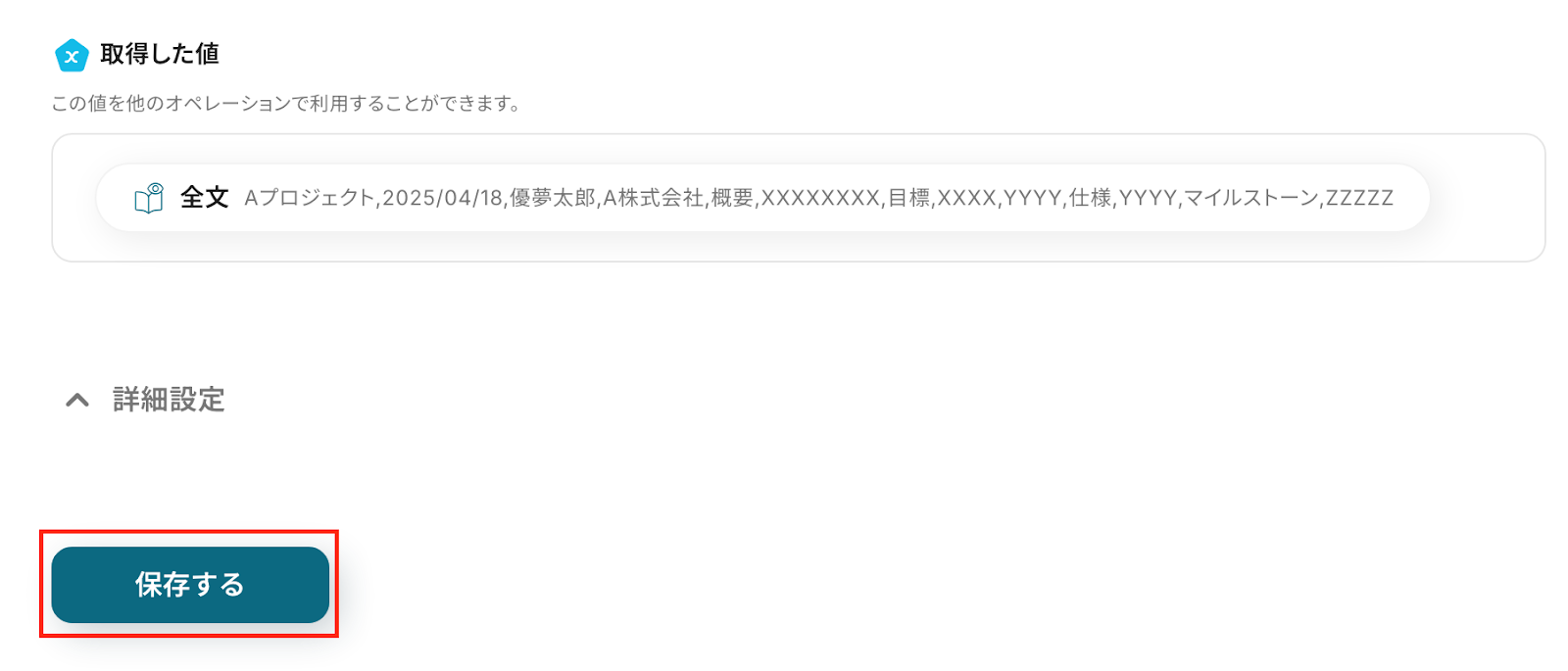 テストが成功し、OCRで読み取った情報が「取得した値」に表示されました。問題がなければ、「保存する」をクリックしましょう。