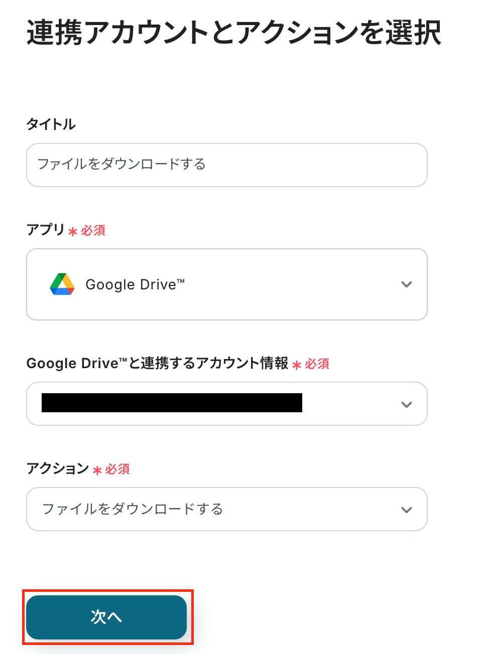 実行アクションは変更せず、次に進みましょう!