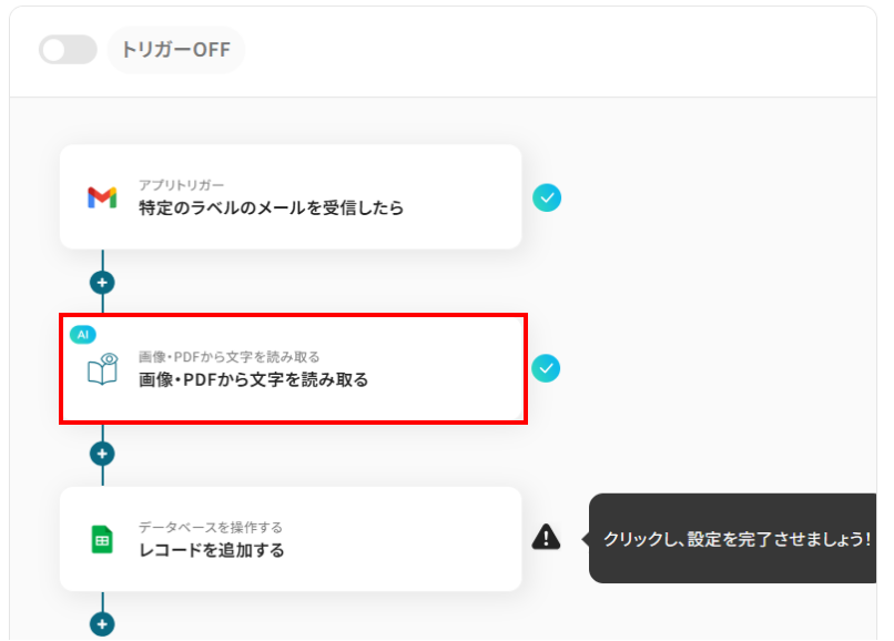 ここでは、指定したPDFや画像ファイルからAIを用いて文字情報を読み取る設定をします。