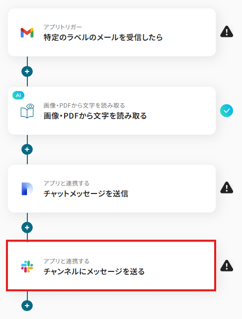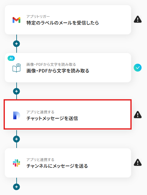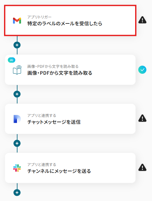 それでは、ここから実際に自動化を導入する設定方法について紹介します! 今回はより具体的な業務フローの一例として「Gmailで特定の条件に合致するメール(例:件名に「請求書」が含まれ、添付ファイルがある)を受信したら、添付ファイルをOCRで読み取り、その内容をDifyで要約してSlackに通知する」 という自動化の作成プロセスを解説します。