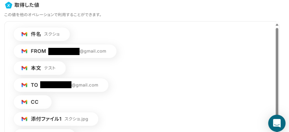 入力が完了したら、「テスト」を実行してみましょう! テストが成功すると、下記のようなアウトプットが表示されます。 先ほどテスト送信した、メールの内容が反映していればOKです。 最後に、「保存する」を選択し次のステップに進みましょう。