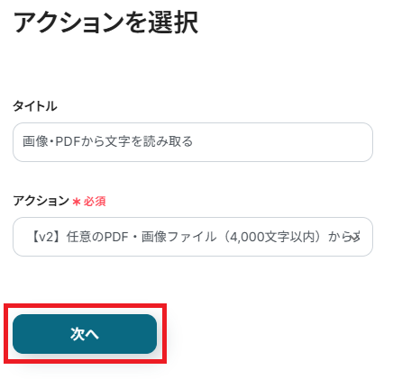 ⑦アクションから画像・PDFファイルを読み取るを選択し、次に進みます。