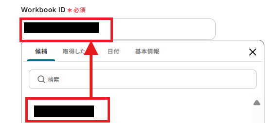 SheetRocksのWorkbook ID、Sheet IDをそれぞれ候補から入れていきます。