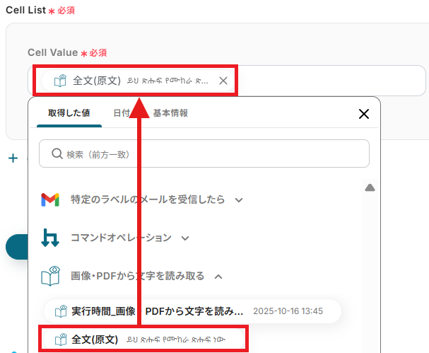 Cell Valueは取得した値より「全文(原文)」を入れていきましょう。