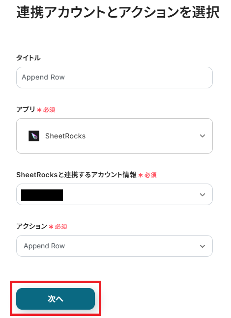 次にSheetRocksに行をAppendしていきます。「Append Row」をクリックしてください。