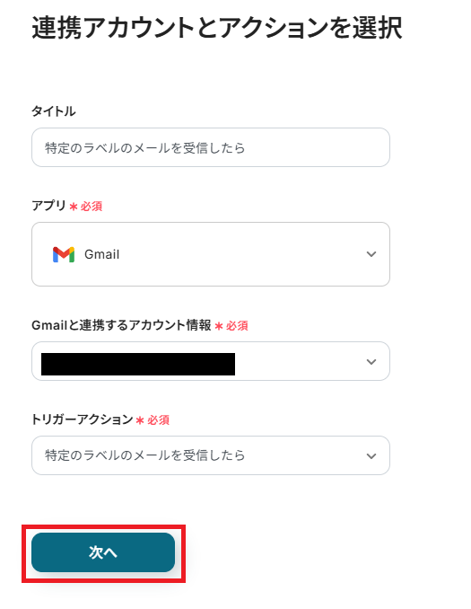 アカウント情報は、トリガーと連携したいアカウントが選択されているか確認してください。