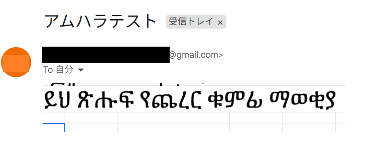 ここでトリガーに設定したGmailアドレスとラベル宛てに、アムハラ語のPDFを添付したテストメールを送っておきます。