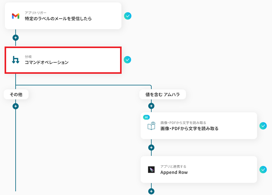・分岐はミニプラン以上のプランでご利用いただける機能(オペレーション)となっております。フリープランの場合は設定しているフローボットのオペレーションはエラーとなりますので、ご注意ください。