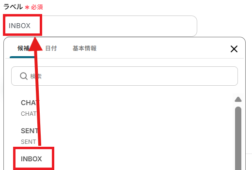 トリガーに感知させたい受信ラベルを、候補の中から選びます。