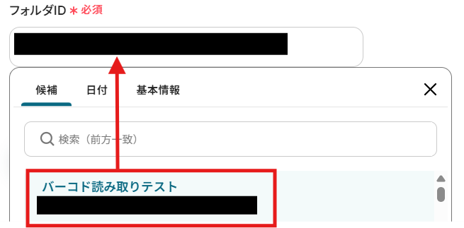 編集欄をクリックすると、連携したGoogle Driveのフォルダ候補が表示されます。