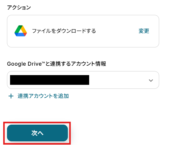 アクションは、「ファイルをダウンロードする」のままで次に進みましょう!