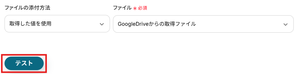 フォルダIDが入力できたら、「テスト」をクリックしてください。