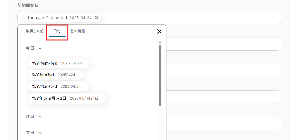 「抽出したい項目」に、目的に応じて任意の項目を設定。 抽出する項目をGoogle スプレッドシートの列に合わせることで、次のステップでのレコード追加がしやすくなります。