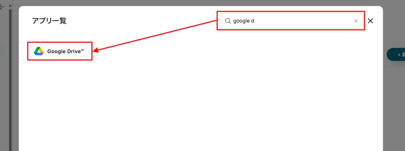 「アプリ一覧」が表示されたら、右上の検索バーでアプリ名(ここではGoogle Drive)を検索して選択。