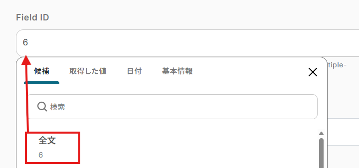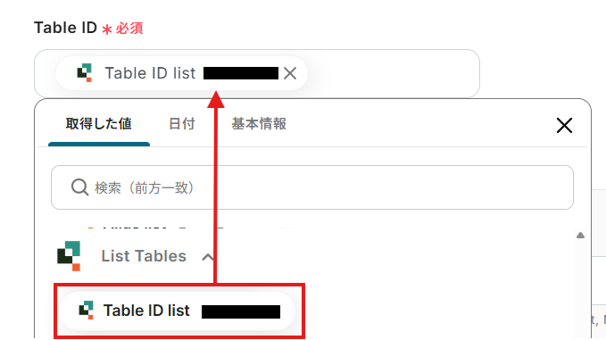 トリガーやオペレーション設定時に、「テスト」を実行して取得した値です。