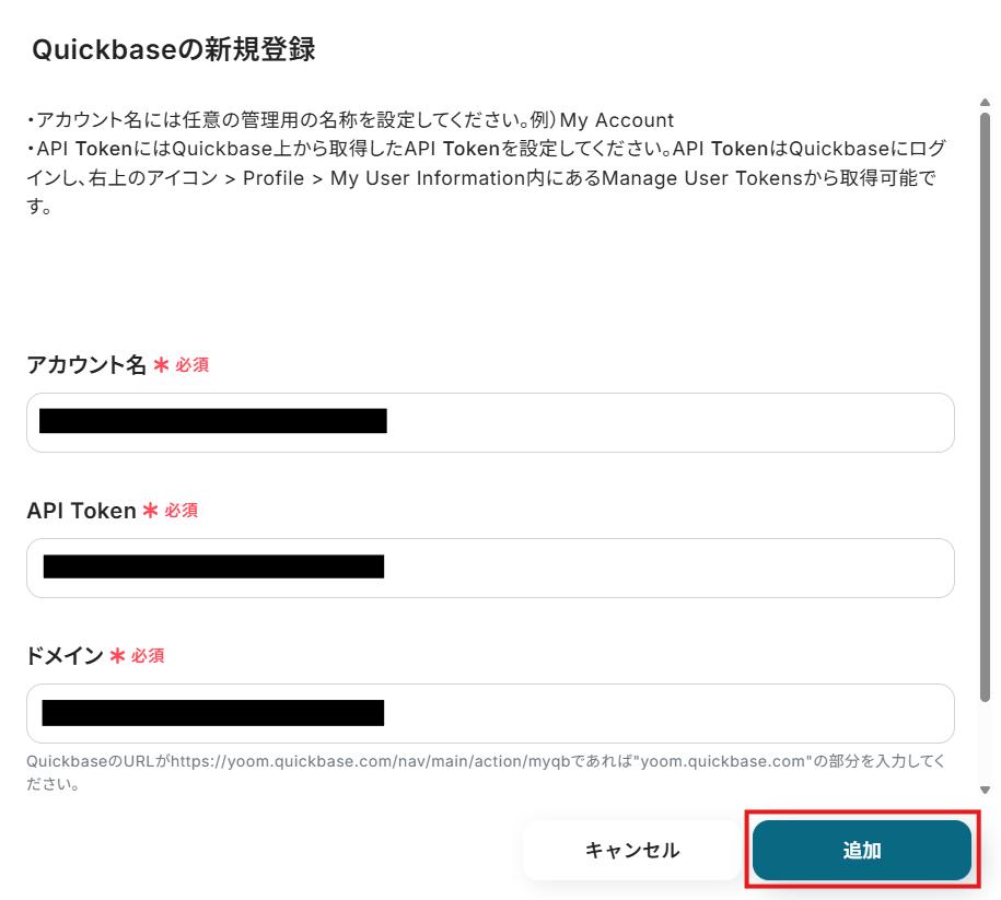 表示された画面で、必須項目を入力し、「追加」をクリックしましょう。