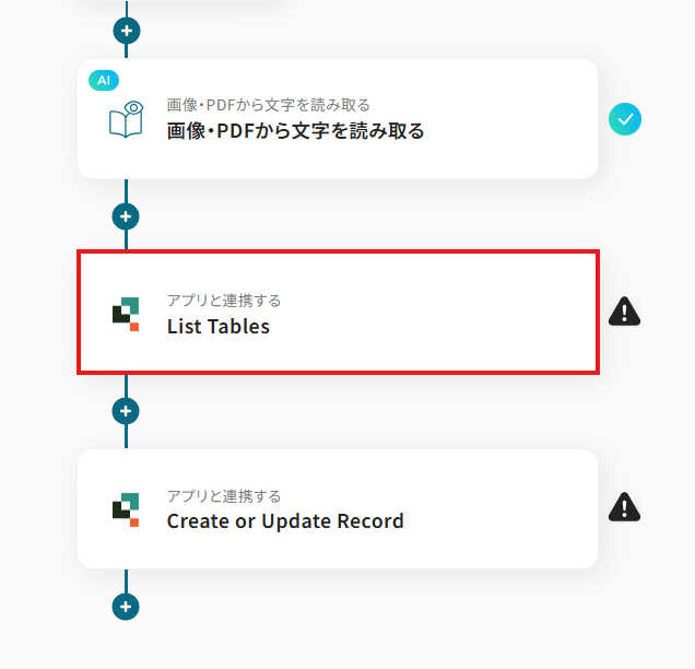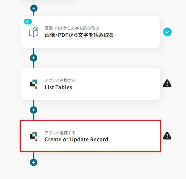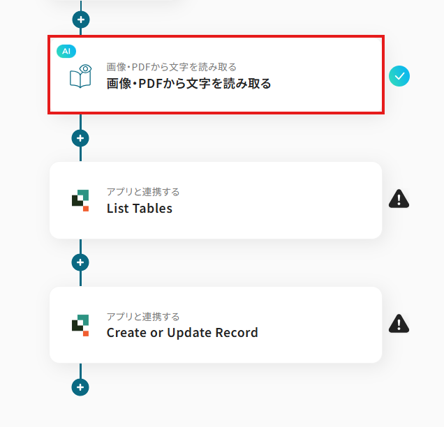 このワークフローを活用すれば、送信された書類を自動でOCR処理し、必要な項目が抜けていないかをチェック。