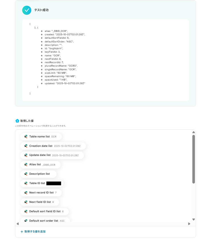 事前に、QuickbaseでOCRで読み取ったデータを格納するテーブルも用意しておきましょう。