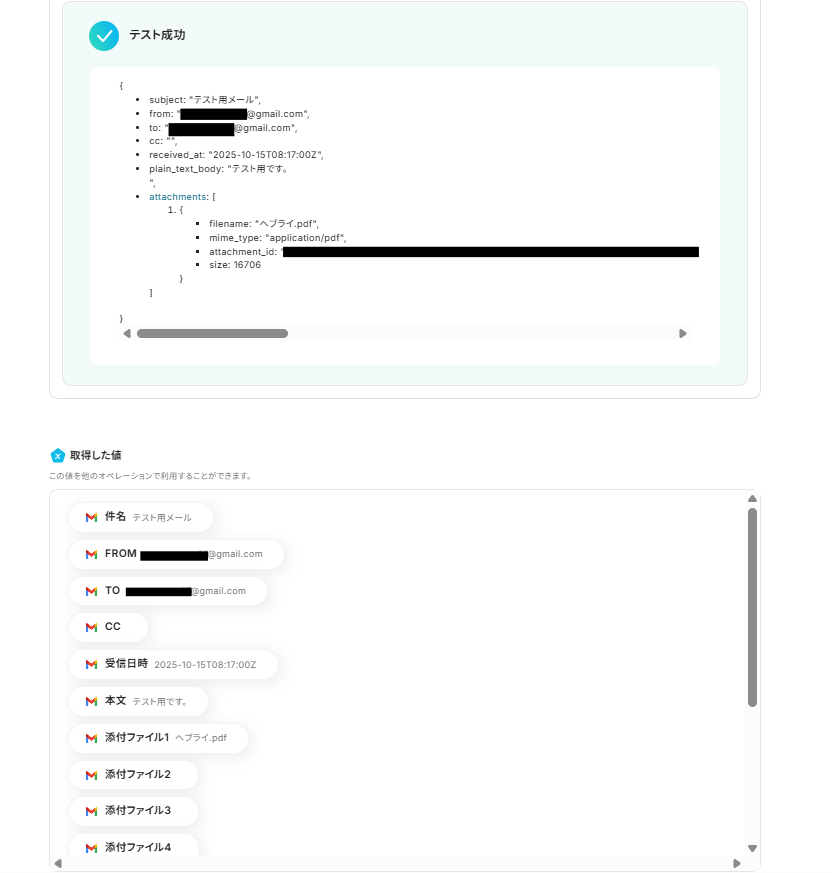 ※後続のGmailのトリガー設定時のテストで必要になります。