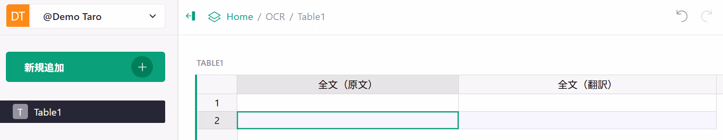はじめに準備として、Gristでファイル内容追記用のテーブルをご用意ください。