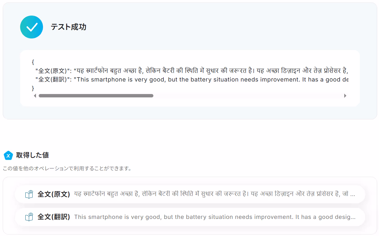成功したら保存しましょう。AIが添付ファイルの内容を原文・翻訳共にテキストとして抽出してくれました!