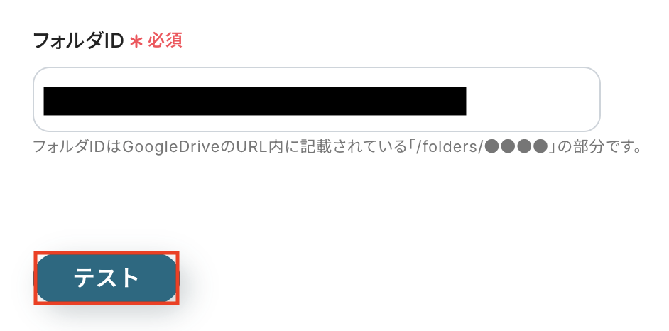 入力が完了したら、設定内容とトリガーの動作を確認するため「テスト」をクリックします。