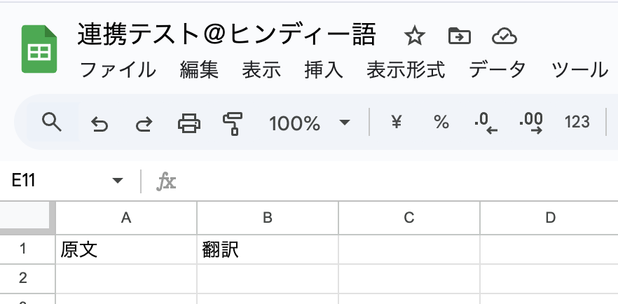 事前準備として、Google スプレッドシートでレコードを追加するためのデータをあらかじめ作成しておきましょう。
