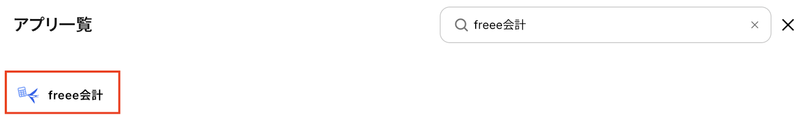 新規接続をクリックしたあと、アプリのメニュー一覧が表示されるのでfreee会計と検索し、対象アプリをクリックしてください。