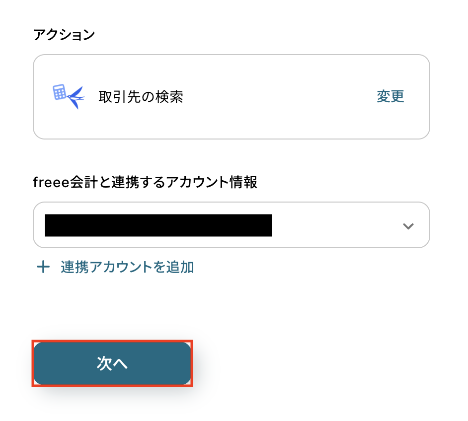 freee会計と連携するアカウント情報に問題がなければ、「次へ」をクリックします。