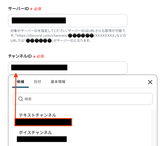 入力欄をクリックすると、連携が有効になっているサーバー内のチャンネル一覧が候補として表示されます。