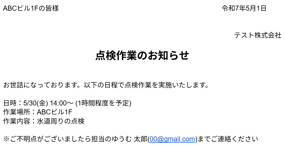 Outlookのメールの本文や宛先は自由に変更してご利用ください。