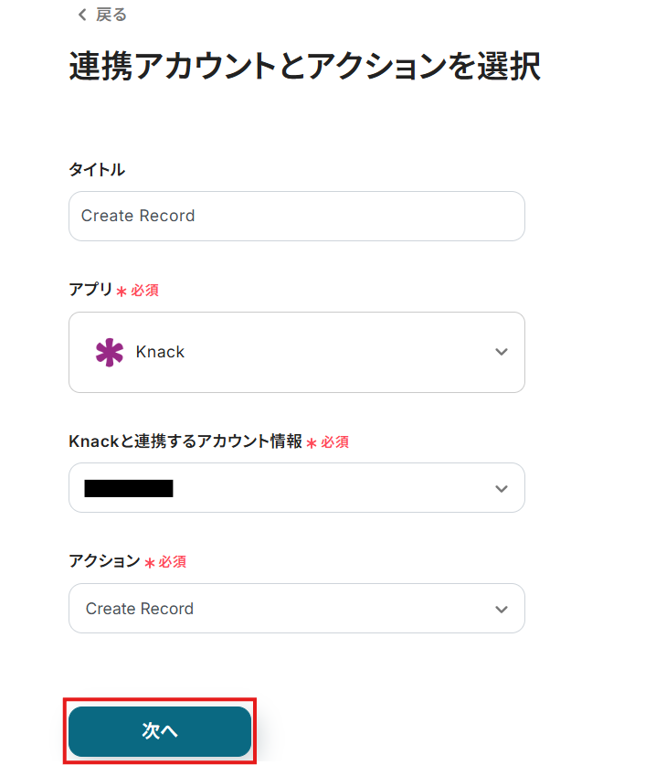 1.アプリと連携する「Create Record 」をクリックしましょう。