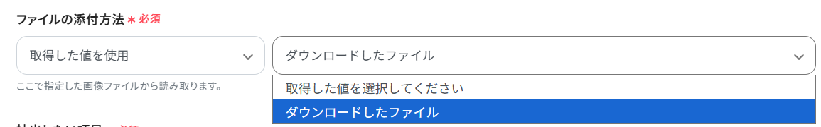 「ファイルの添付方法」は、以下画像のようにプルダウンから選択してください。