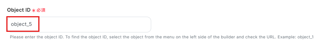 2.API接続設定を行います。 「Object ID」を入力しましょう。 レコードを追加したい対象のテーブルのURLから取得して入力してください。