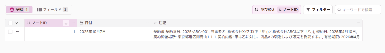 A:はい、可能です。 本記事では「本文」と設定しましたが、例えば、会社名・日付・金額など具体的な複数の項目を設定し、抽出することができます。