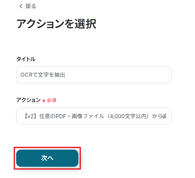 1.続いて、OCR技術を使って、テキストを抽出する設定を行います。 「OCRで文字を抽出 」をクリックしましょう。