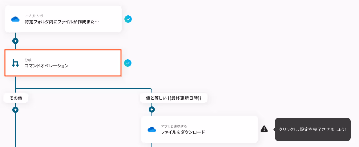 OneDriveのトリガーをもとに、分岐条件を指定するための設定をします。
