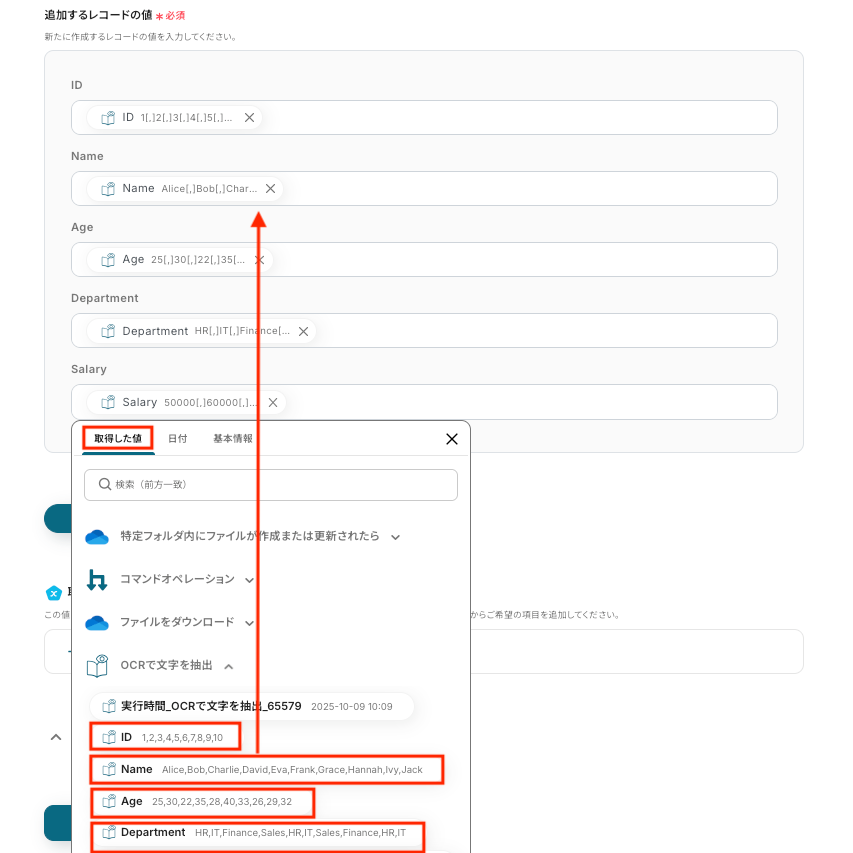 ※データベースを操作するオペレーションの詳細については、【Excel】データベースを操作するオペレーションの設定に関してをご覧ください。