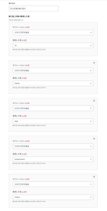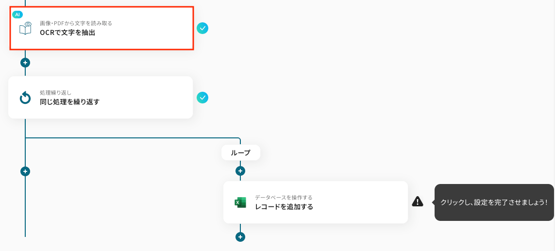 ・OCR_AIオペレーションはチームプラン・サクセスプランでのみご利用いただける機能となっております。フリープラン・ミニプランの場合は設定しているフローボットのオペレーションはエラーとなりますので、ご注意ください。