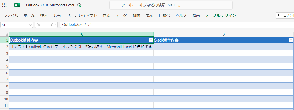 テストが成功したら、OneDriveに保存したMicrosoft Excelのレコードに追加されます。