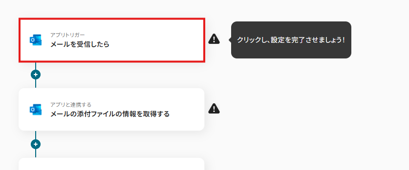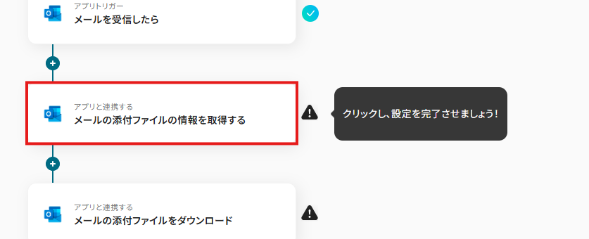 Outlookのメールに添付されているファイルの情報を取得する設定をしていきます。