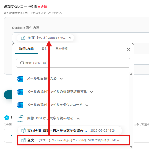 追加するレコードの値:レコードに合わせて「画像・PDFから文字を読み取る」から選択します