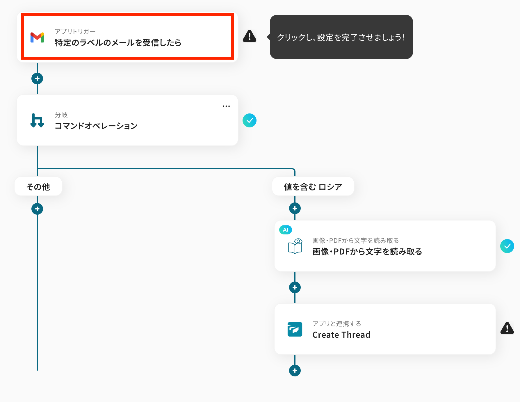 - Gmailのトリガー設定とOCR、Twistのアクション設定