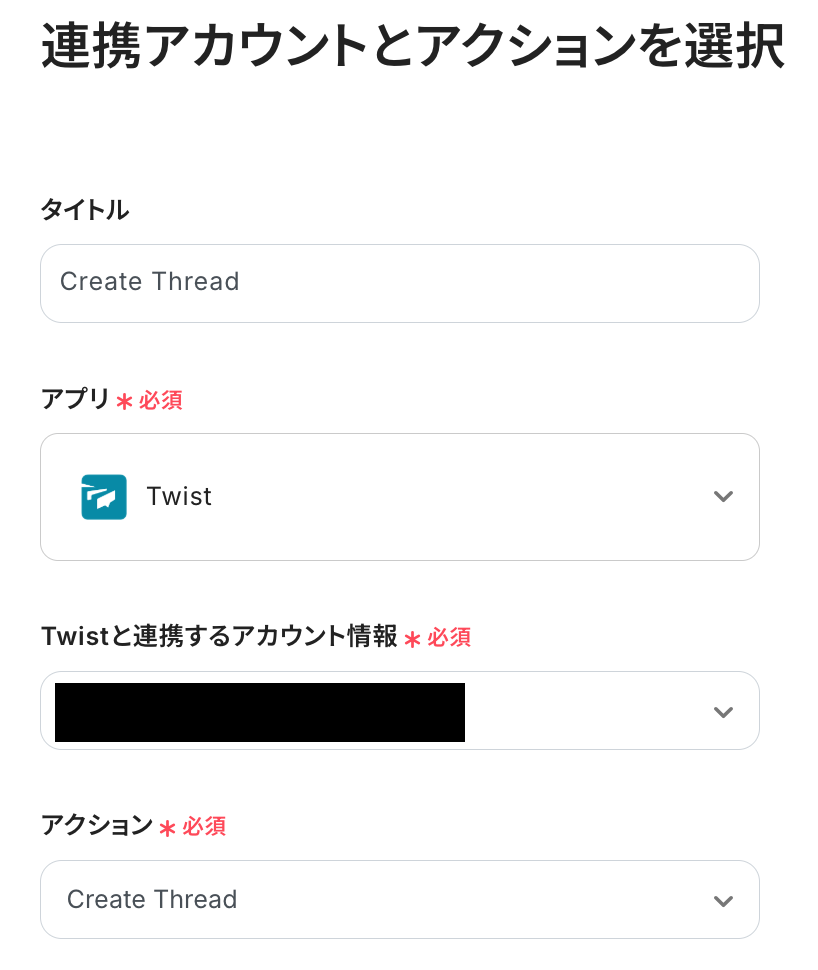 - 最後に、オペレーションでTwistの「Create Thread」アクションを設定し、OCR機能で読み取った内容を投稿します
