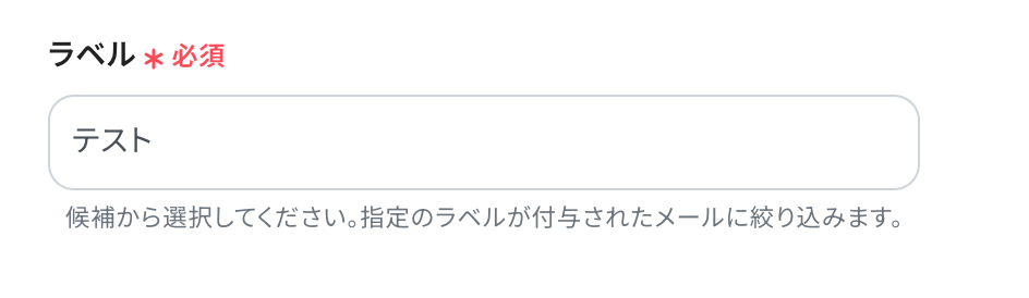 - Gmailのトリガー設定では、自動化の対象としたいメールに付与するラベルを任意で設定してください。