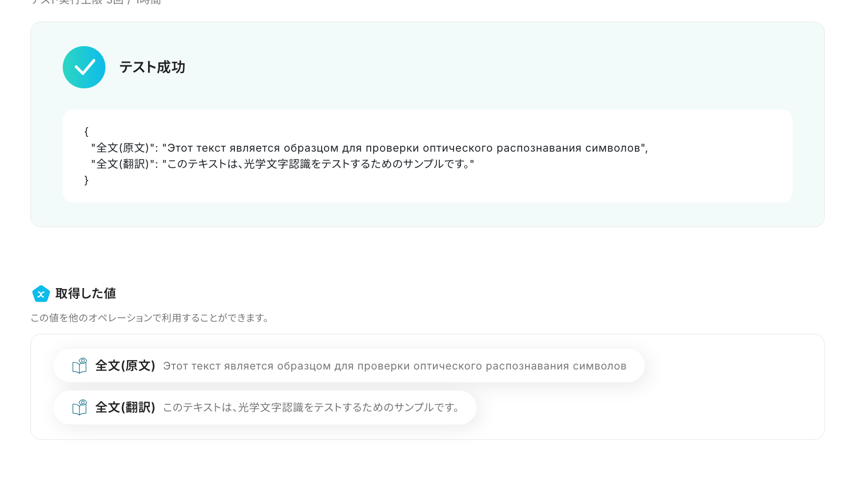 ※YoomのOCR機能では、アクション記載の規定の文字数を超えるデータや、文字が小さすぎる場合に正しく読み取れないことがあります。文字数や文字の大きさには少し余裕を持たせてご利用ください。