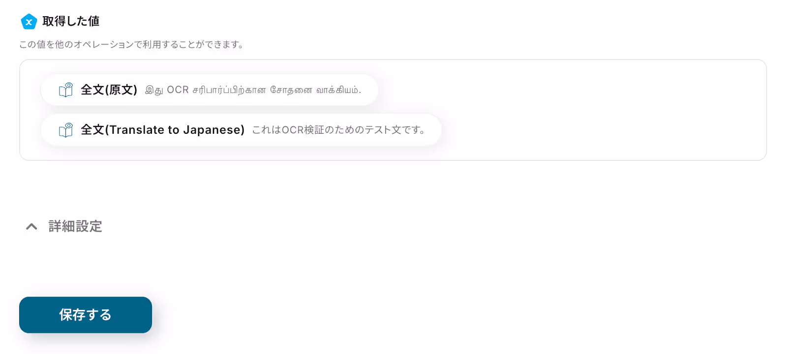 「OCRで文字を抽出」の詳しい設定方法については、こちらのヘルプページをご確認ください。